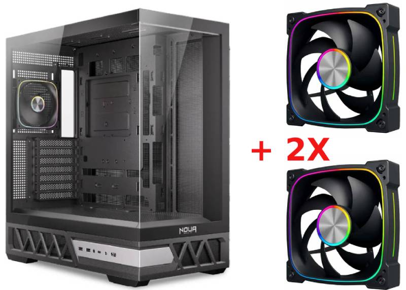 Case Pc Noua Orizon MK100 ATX Mid Tower con vetro temperato 1x fan ARGB 2x USB3.0 x1 usb Type-C con due Ventole Lips Black 120 ARGB in Bundle
