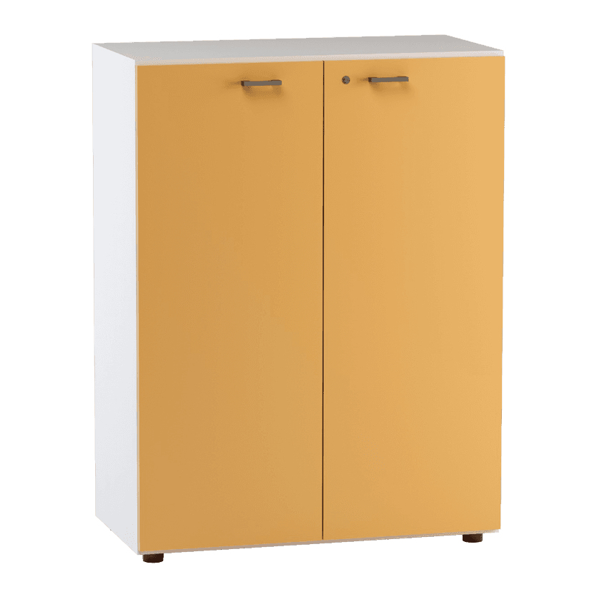 Le due ante in melaminico sp. 18 mm proteggono contenuti sensibili dalla polvere e dagli sguardi, con bordi ABS 2 mm in tinta per una migliore resistenza all’uso. Le cerniere a 110° con regolazione 3D rendono fluido l’accesso, mentre la serratura a cilindro estraibile (doppia chiave pieghevole) e la maniglia a ponte in PP (interasse 64 mm) completano una dotazione professionale.