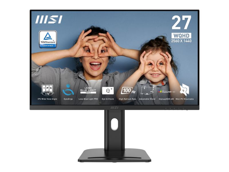 MSI Pro MP273QP E2. Dimensioni diagonale schermo: 68,6 cm (27"), Risoluzione del display: 2560 x 1440 Pixel, Tipologia HD: Wide Quad HD, Tecnologia display: LED, Tempo di risposta: 1 ms, Rapporto d'aspetto nativo: 16:9, Angolo di visualizzazione (orizzontale): 178°, Angolo di visualizzazione (verticale): 178°. Altoparlanti incorporati. Montaggio standard VESA, Regolazione altezza. Colore del prodotto: Nero