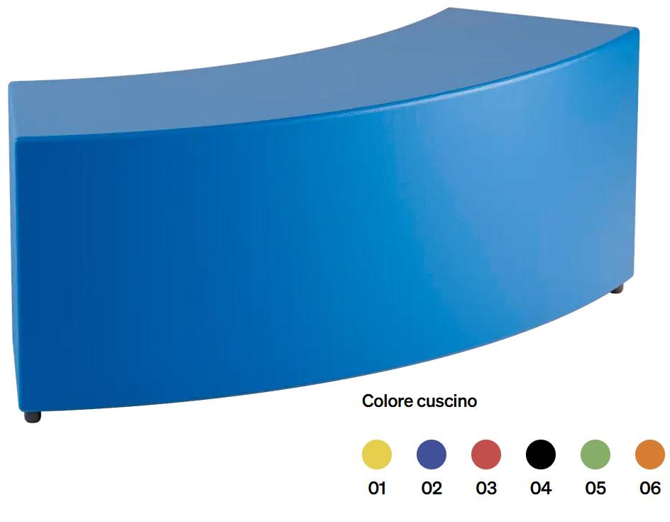 La modularità è totale: la panca curva può essere accostata a moduli dritti e angolari della stessa collezione per creare isole, anelle semicircolari o percorsi di seduta che guidano il flusso delle persone. La palette di 6 colori consente la codifica cromatica di aree e funzioni, mantenendo coerenza con l’identità visiva del progetto.
