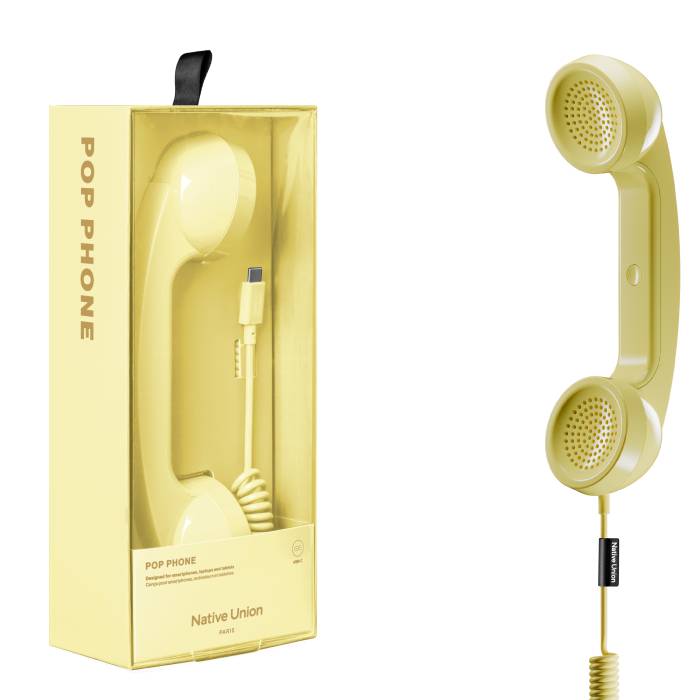 Il Native Union Pop Phone (codice POP-P-LMO, EAN 4895200487067) è una cornetta telefonica retrò con connessione USB-C, compatibile con smartphone, tablet e laptop. Progettata per offrire chiamate chiare e confortevoli, integra microfono e altoparlante di alta qualità, risultando ideale anche per videochiamate e riunioni online.