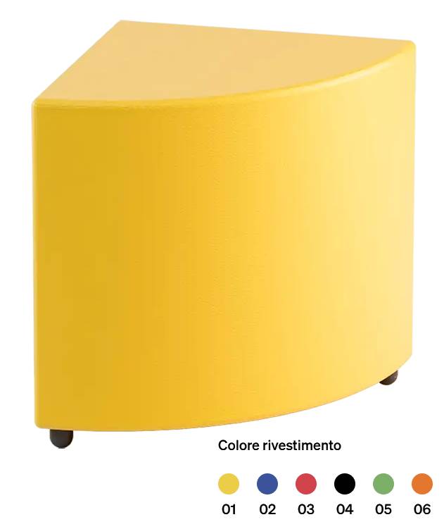 Il PSAG90SPNI è un pouf angolare a 90° della lounge collection Motris: compatto, morbido e ideale per creare sedute continue negli spazi educativi e nelle aree attesa. Struttura interna in pannello di particelle E1, piedini fissi in PVC nero, imbottitura in poliuretano espanso ad alta densità (sp. 10 mm) e rivestimento in similpelle disponibile in 6 colori (anche in versione ignifuga 1IM / Classe 1).