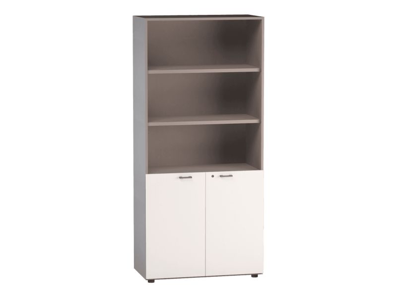 Armadio libreria alta a giorno superiore con 2 ante inferiori (90 × 46,3 × 196,7 cm) vari colori