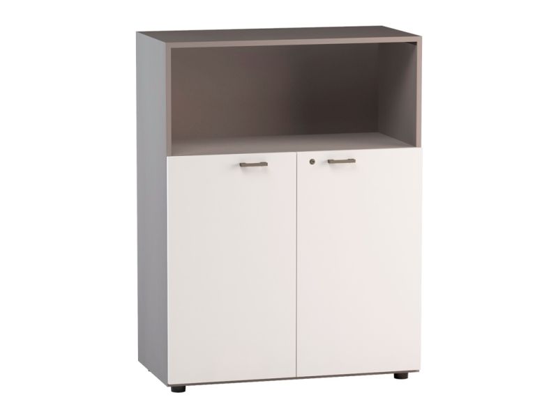Libreria media a giorno superiore con ante in legno con serratura (90 × 46,3 × 119,8 cm)