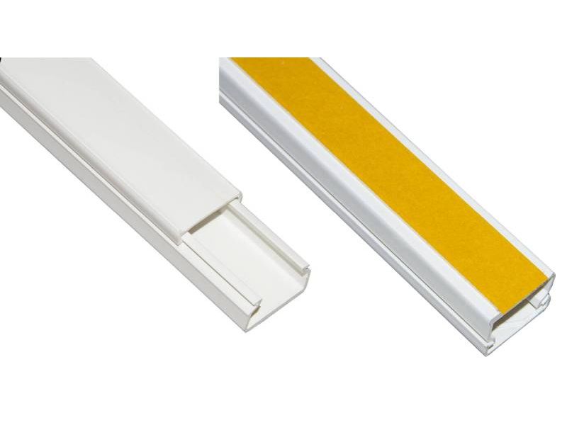 Canalina passacavi adesiva in PVC 15×10 mm lunghezza 2 metri con coperchio scorrevole colore bianco