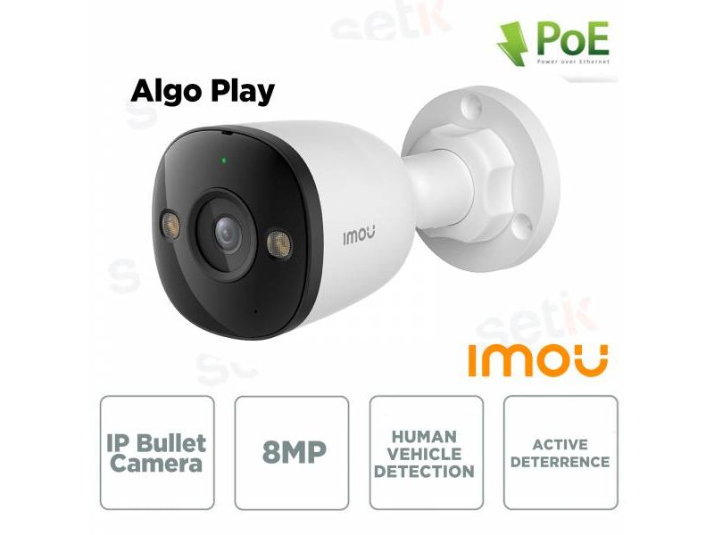 Imou Telecamera IP PoE ALGO 4K 8MPX da Esterno AI IR 30mt IP67 WDR 110 dB Microfono supporto microSD