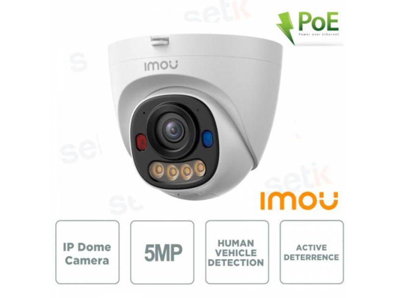 Imou Telecamera IP PoE Dome 3K 5MPX AI IR 30mt IP67 H.265 Allarme LED Microfono supporto microSD