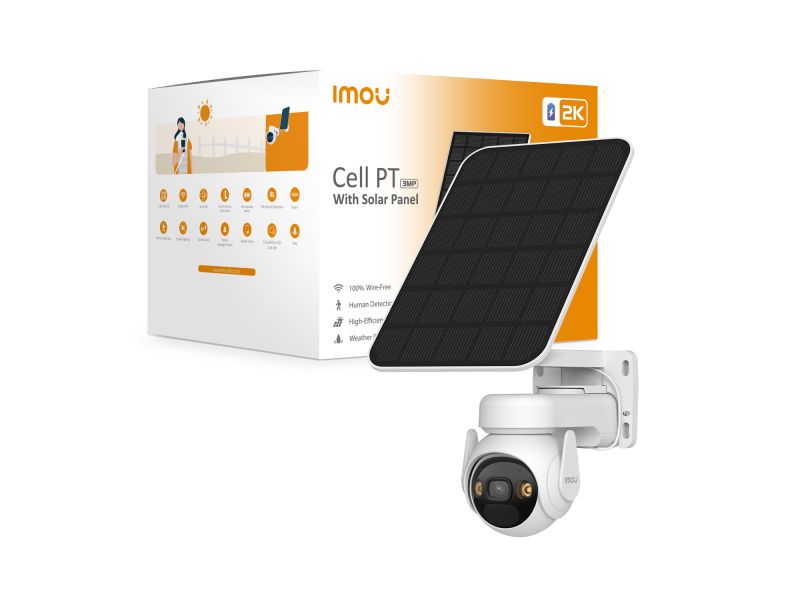 Imou Cell PT Kit - Telecamera da Esterno a batteria con Pannello Solare, risoluzione 2K (3MP), Rilevamento Movimento/Umano, Visione Notturna a Colori, Audio Bidirezionale, IP66