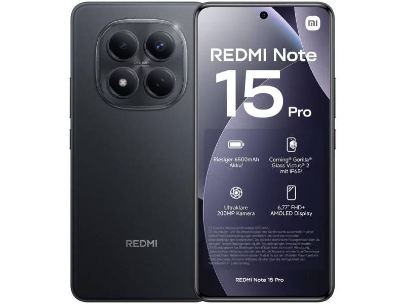 Smartphone Xiaomi Redmi Note 15 Pro+ 5G lcd 6,83" AMOLED 12GB RAM 512GB STORAGE colore Midnight Black