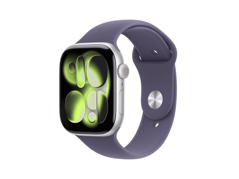 Apple Watch Series 11 GPS 46mm Cassa Alluminio Argento con Sport Band Viola Nebbia - M/L