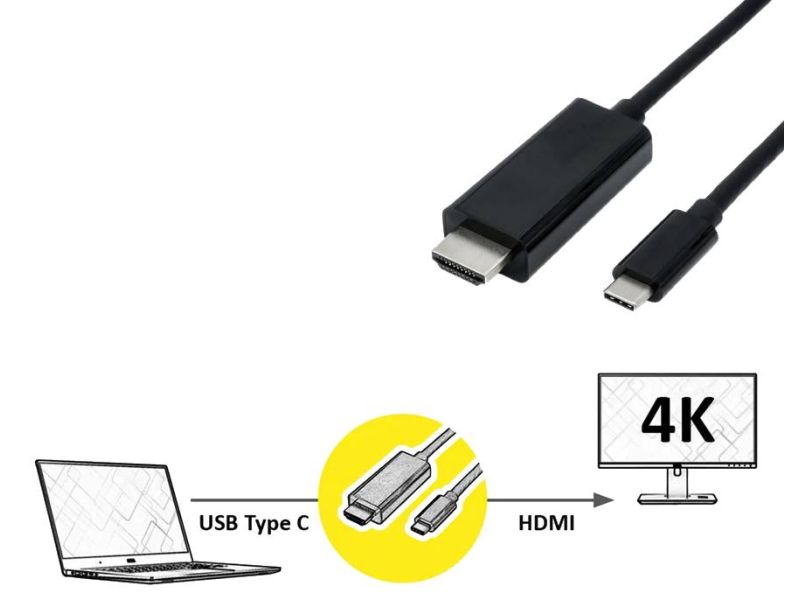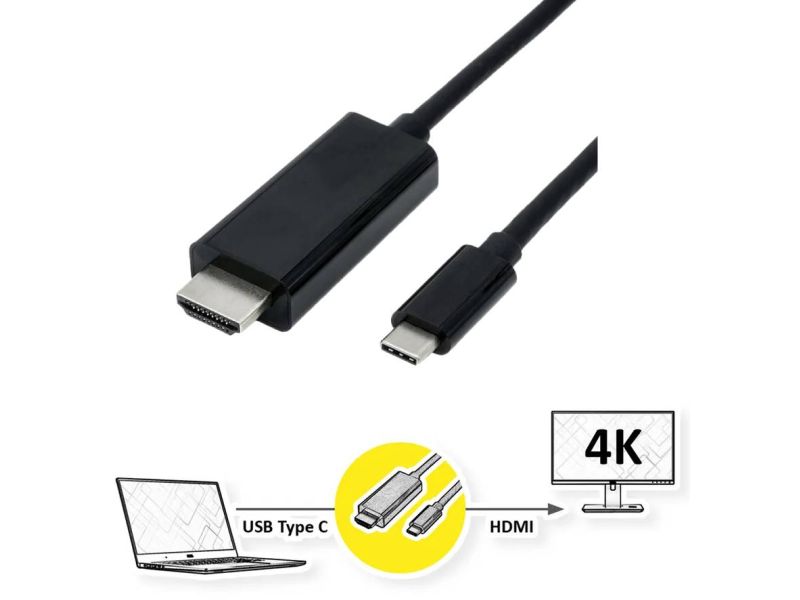 Roline Standard Cavo USB?3.1 Type-C a HDMI 1?mt 4K UHD 3840×2160? 30?Hz colore Nero