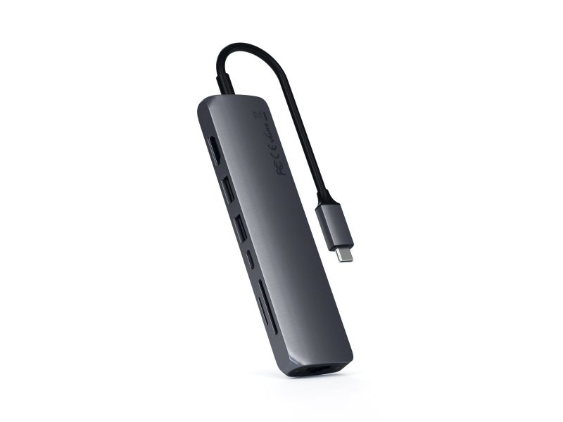 Satechi Schlanker Typ C Multi-Port Adapter V2 aus Aluminium mit 4K HDMI (30Hz), MicroSD/SD-Kartenlesern und USB 3.0 (Space Grau)