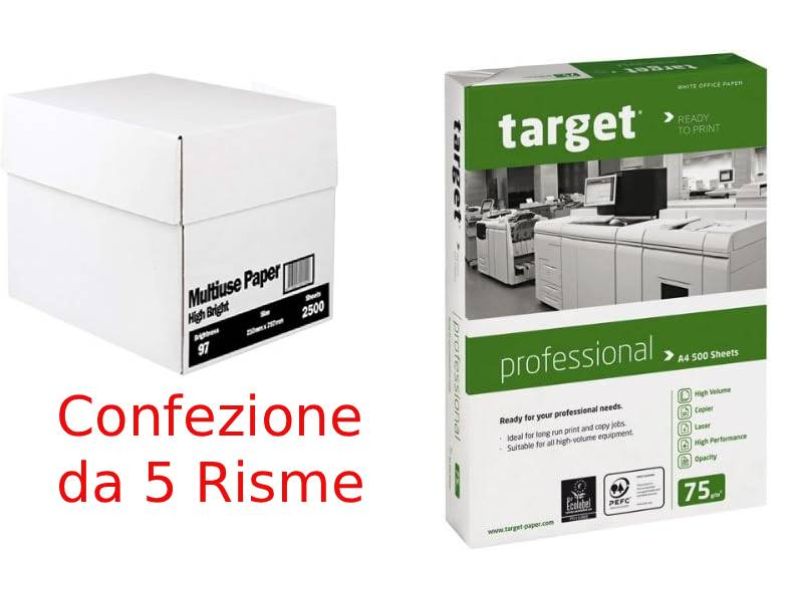 Confezione da 5 Risme Target Professional Carta A4 75 g/m Bianca