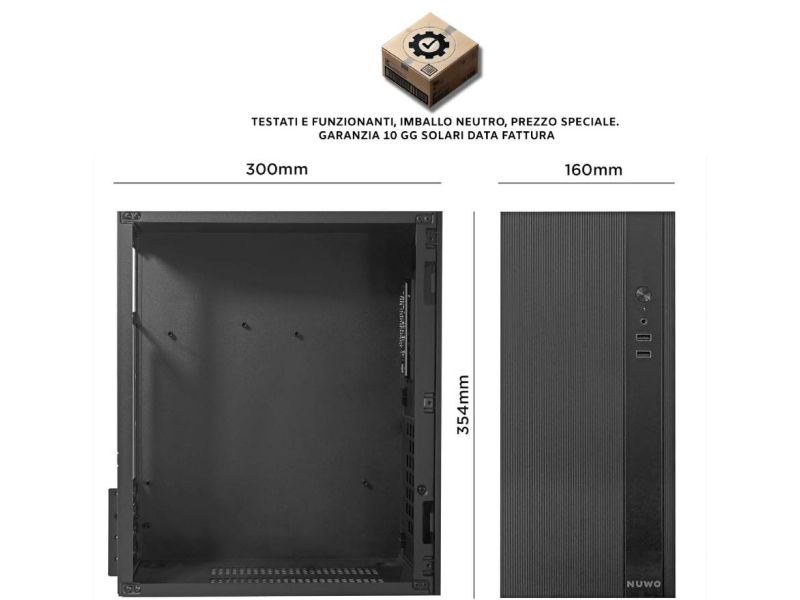 Case Mini Tower Nuwo Opal Z100 senza alimentatore 2x Usb2 SPCC 0,6mm supporta M-ATX e M-ITX colore Nero prodotto Outlet nuovo con ammaccatura laterale