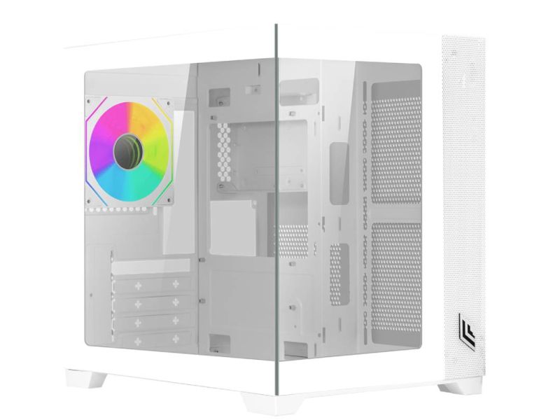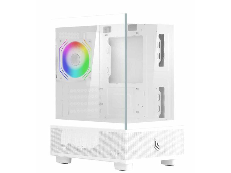 case micro tower Fobia L111 bianco in vetro temperato con frontale Meshato e ventola ARGB preinstallata supporta anche dissipazione a liquido 360mm
