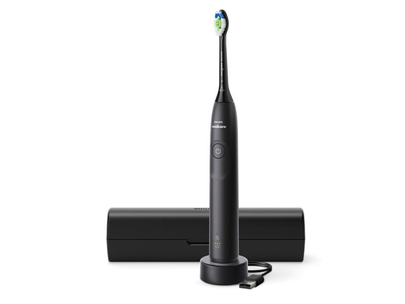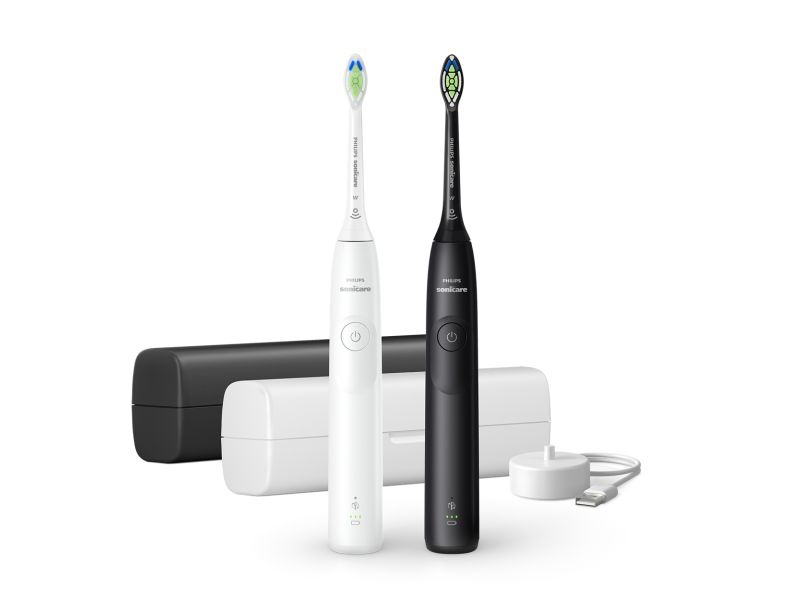 Philips Sonicare serie 5300 Spazzolino Elettrico Sonico con base di ricarica e custodia, 2 livelli di intensità, sensore di pressione confezione da 1 spazzolino bianco e 1 spazzolino nero HX7109/01