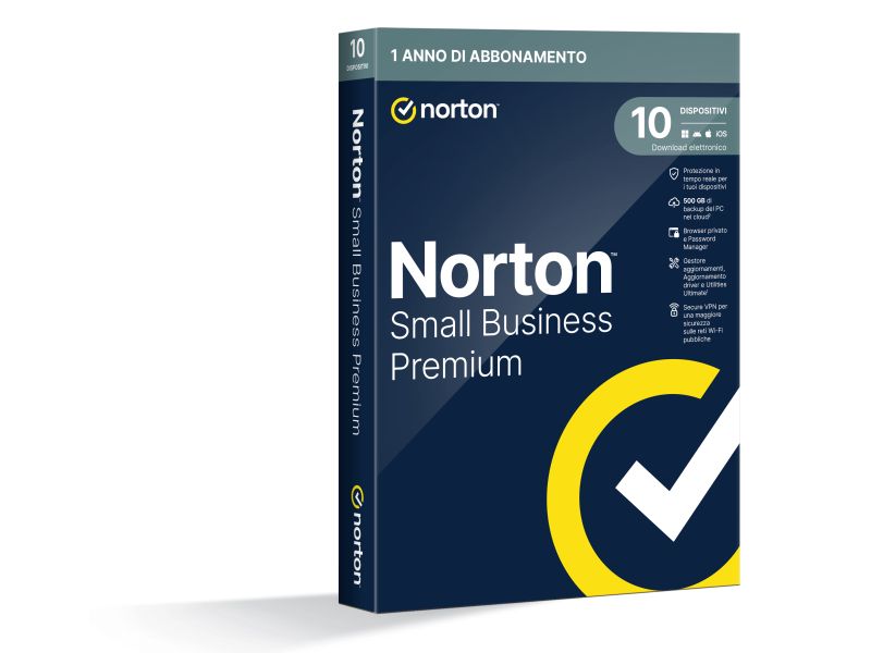 Norton Small Business Premium con spazio di backup Cloud da 500 GB per 1 Utente e 10 Dispositivi durata licenza 1 Anno