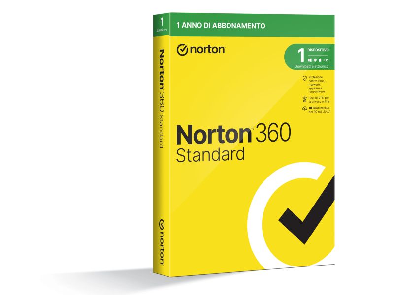 Norton 360 Standard 2024 Antivirus per 1 dispositivo Licenza di 1 anno con rinnovo automatico con Secure VPN e Password Manager per PC, Mac, tablet e smartphone