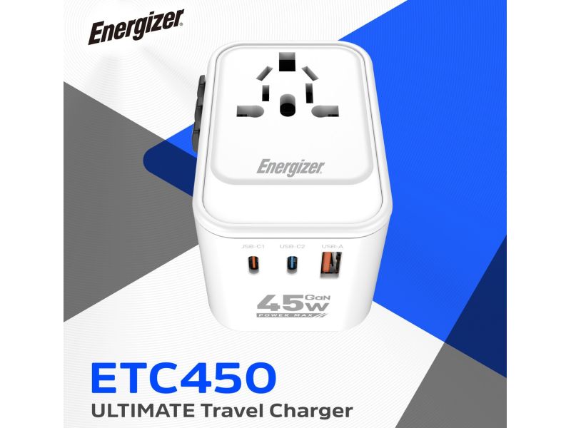 Presa da viaggio internazionale Energizer ETC450 PD 45?Watt 2×USB-C + 1×USB-A Travel Plug