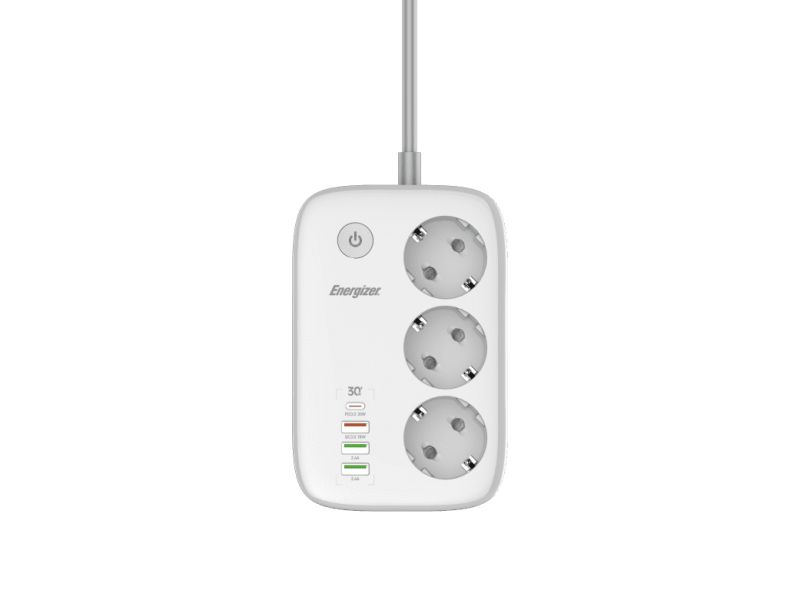 Energizer EPB2500W03EU prolunghe e multiple 2 m 5 presa(e) AC Interno Bianco