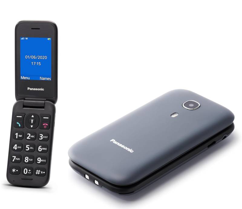 Telefono Cellulare a Conchiglia Panasonic KX-TU400EXG 2G per anziani e bambini con Pulsante SOS Chiamata Prioritaria Resistente agli Urti Tasti Grandi Fotocamera Torcia Bluetooth colore Grigio